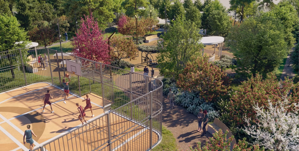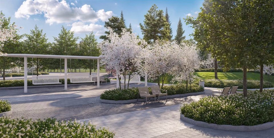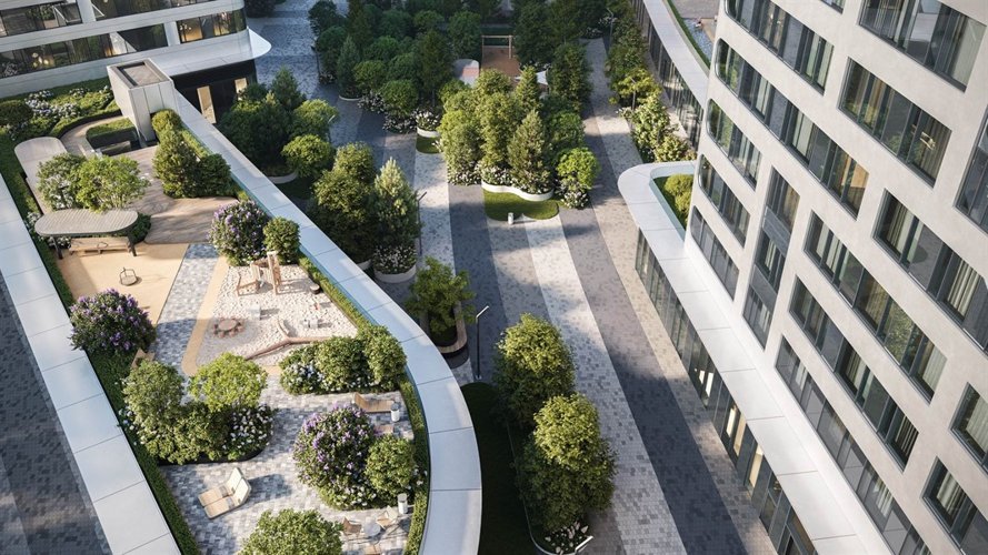 Главной артерией архитектурного проекта станет собственный зеленый бульвар с 18 000 деревьев. Он начинается с площади у входа на территорию и, объединяя все внутренние пространства, проходит через ключевые площади с арт-объектами, водными зонами и архитектурными формами.